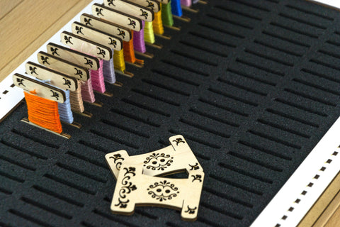 Kompaktiška siūlų ritelių dėžutė siuvinėjimui