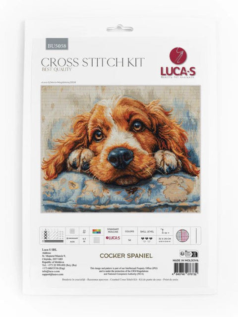 Koker spanielio siuvinėjimo kryželiu rinkinys, 32×25 cm — Luca-S