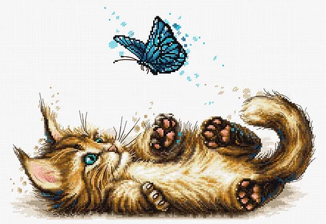 Siuvinėjimo rinkinys kryželiu „Žaismingas kačiukas“ – aiški schema, tvarkus rezultatas, patogus darbas.