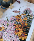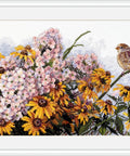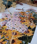 Vasarišku botaniniu motyvu su rudbekijomis ir flokso žiedais kuriama šilta, jauki atmosfera, subtiliai atgaivinanti bet kurį interjerą. Kruopščiai išpiešti žiedų kontūrai ir natūralūs tonai suteikia lengvumo, todėl kūrinys harmoningai dera tiek klasikiniuose, tiek moderniuose namuose.