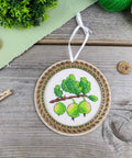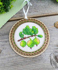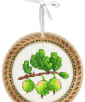 Kompaktiškas kryželiu siuvinėjimo rinkinys ant perforuoto medinio pagrindo – miniatiūra su agrastų motyvu subtiliam interjero akcentui ir greitam kūrybiniam projektui.