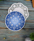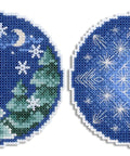 Siuvinėjimo kryželiu rinkinys kalėdiniam burbului su raštais – kompaktiškas, greitas projektas tvarkingam ornamentui sukurti. Išbaigtas dydis 9 × 9 cm; technika – kryželiu; sudėtingumas tinka pradedantiesiems ir pažengusiems.