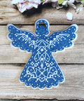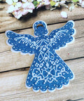 Technika: kryželiu. Dydis: 11 × 11 cm (galutinis). Motyvas: angelas. Sudėtingumas: patogu pradedantiesiems, greitas projektas pažengusiems.