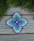 Kryželių siuvinėjimo rinkinys „Šerkšnotas žiedas“ 9×9 cm – žiemos gėlės mini dekoras