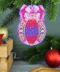 Kryželių siuvinėjimo rinkinys „Širdies magija“ – kalėdinis burbulas eglutei, 12×9 cm