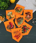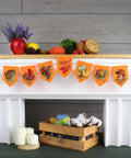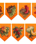 Kryželiu siuvinėta rudens oranžinė girlianda – rinkinys, 7 vėliavėlės, 10×7 cm