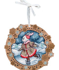 Mini kryželiu siuvinėtas medinis paveikslas „Užšalusi upė“, 11×12 cm