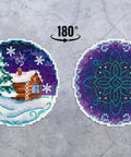 Kompaktiškas 9 × 9 cm siuvinėjimo kryželiu rinkinys su jaukiu „Ramaus vakaro“ motyvu – trumpiems kūrybos seansams ir subtiliam sieniniam ar stalo dekorui.