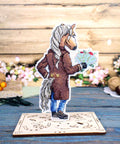 Siuvinėjimo rinkinys kryželiu „Arklys su paltu“, 13 × 8 cm