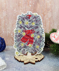 Šventinis kryželiu siuvinėjimo rinkinys „Naujųjų metų ežiukas“ 12×8 cm