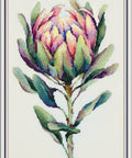 PANNA „Protea“ kryželių siuvinėjimo rinkinys – elegantiškas gėlių motyvas, leidžiantis sukurti dekoratyvinį paveikslą ir mėgautis raminančiu kūrybos procesu.