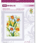 RIOLIS siuvinėjimo rinkinys „Spring Glow. Daffodils“ – švytintys pavasariniai narcizai kryželiu. Rinkinyje viskas, ko reikia: išrūšiuoti Anchor siūlai, balta Zweigart 14 ct AIDA, adata ir aiški spalvota schema su instrukcija 6 kalbomis.