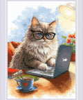 RIOLIS siuvinėjimo rinkinys "Writer of Meowmoirs" Nr. 2263 — 21×30 cm, 30 spalvų, Aida 14ct