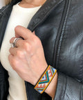 Stilingas siuvinėjimo kryželiu rinkinys ant perforuotos dirbtinės odos – viskas, ko reikia apyrankei pasigaminti namuose. Tinka tiek pradedantiesiems, tiek pažengusiems, siekiantiems tvarkaus, ilgaamžio ir estetiško rezultato be papildomų pirkinių.