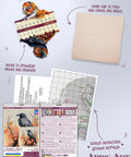 - Audinys: 14 ct kavos spalvos kanva; lapas ~34 × 35 cm su platokais kraštais įrėminimui
