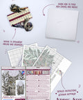 Medžiagos: medvilniniai siūlai, medvilninė Aida kanva, plieninė adatėlė. Spalvos: balta kanva, 17 siūlų atspalvių. Paskirtis: kryželiu siuvinėjimui, dekoratyviniams paveikslams ir interjero puošybai.
