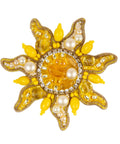 Stilinga saulės motyvo segė siuvinėjimui karoliukais ir kristalais. Subalansuotas rinkinys leidžia sukurti kruopščią, 6 × 6 cm broškę – puikiai tinkančią kasdienai ar dovanai. Glotnus veltinis ir tvirtas užsegimas suteikia švarią apdailą ir ilgaamžiškumą.